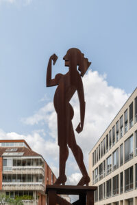 Georg Ettls „Frau mit Armen“ – in Viersen rasch zur „Starken Frau“ umbenannt – wurde 2004 als Schenkung Viersener Bürgerinnen und Bürger am neuen Stadthaus aufgestellt.