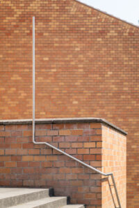 Die Arbeit „Antenne Viersen“ des Künstlerduos Maik und Dirk Löbbert ist im Kreis der neu in die Skulpturensammlung aufgenommenen Werke sicherlich das unauffälligste, vielleicht sogar oft übersehene Werk. Gerade darum ist es typisch für die Brüder Löbbert. Seit 40 Jahren arbeiten sie als Künstlerpaar, 20 Jahre lang lehrten sie gemeinsam als Professoren für Bildhauerei und Kunst im öffentlichen Raum an der Kunstakademie Münster. Für ihre ortsbezogenen Arbeiten schauen sie genau hin, entdecken das, was vielen verborgen bleibt, und knüpfen mit ihrer Kunst dort an, subtil und oft humorvoll. So entdeckten sie 2018 an der Treppe zum Forum das abrupt endende Geländer und führten – in technischer Perfektion – den Handlauf ganz selbstverständlich und beiläufig weiter, senkrecht in die Höhe, mehr als 3 m weit.