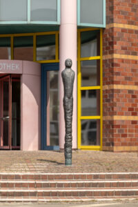 Maria Lehnens „Große Stehende“ entstand 2005. Im Jahr 2007 wurde sie als Schenkung Viersener Bürgerinnen und Bürger vor der Albert-Vigoleis-Thelen-Stadtbibliothek aufgestellt und nun in die Skulpturensammlung Viersen integriert.